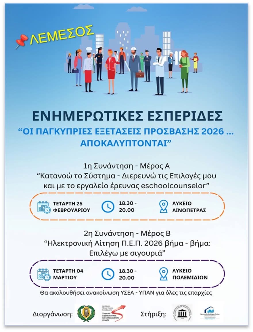 Ενημερωτικές Εσπερίδες - Παγκύπριες Εξετάσεις Πρόσβασης 2026