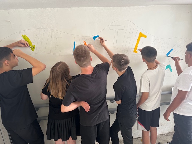 Το ποίημα της νεαρής Αμερικανίδας ποιήτριας άρχισε να μετατρέπεται σε τοιχογραφία από τους/τις μαθητές/τριες της Ειδικής Μονάδας, σε συνεργασία με τις μαθήτριες του Τμήματος Β6 της κατεύθυνσης Καλών Τεχνών. Με τον συντονισμό του Υπεύθυνου Τμήματος και του προγράμματος κ. Γεώργιο Πεσίνη καθηγητή Θρησκευτικών και την καθοδήγηση της ειδικής εκπαιδευτικού του «Μικρού Οδυσσέα», κ. Αγγελικής Χαλκιοπούλου, τα παιδιά ξεκίνησαν να δίνουν «χρώμα», «μηνύματα» και «ζωή» στους τοίχους που περιβάλλουν την αποθήκη, στην οποία έχουν συγκεντρωθεί τα σχολικά είδη και τα βιβλία, για το σχολείο που υιοθετήσαμε στο Waterloo της Σιέρα Λεόνε, της Ορθόδοξης Μητρόπολης Γουινέας.