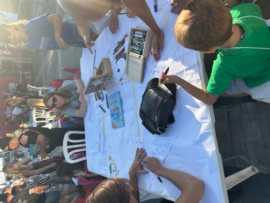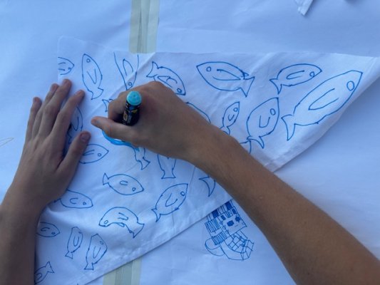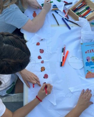 Μαζί με τον υπεύθυνο της Ειδικής Μονάδας κ. Γεώργιο Πεσίνη, καθηγητή Θρησκευτικών, μαθητές/τριες της Μονάδας, συμμετείχαν σε εργαστήρι τέχνης που οργάνωσε @ Μικρός Οδυσσέας - Little Odysseus, με επικεφαλής την ειδική εκπαιδευτικό κ. Αγγελική Χαλκιοπούλου. Βασισμένο πάνω στο βιβλίο «Μπαντάνες», των κ. Αντώνη Παπαδημητρίου και κ. Μυρτώς Δεληβοριά, οι μαθητές/τριες μας προσκάλεσαν παιδιά και μεγάλους/ες να ζωγραφίσουν τη δική τους μπαντάνα, εμπνευσμένη από το βιβλίο. Έτσι δημιουργήθηκαν μπαντάνες με αστέρια, με λουλούδια, με πειρατές, με όνειρα, με καράβια, με το μικρό Οδυσσέα, με πολύ ταλέντο, διάθεση, με αγάπη, με συνεργασία, σε μία ατμόσφαιρα, που η συμπερίληψη ήταν πολύ δυνατή.