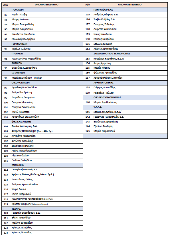 Κατανομή Τμημάτων ανα καθηγητή/τρια ΣΕΑ