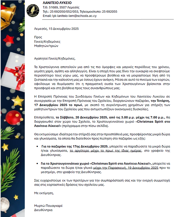 Πρόσκληση Γονέων Α΄ Λυκείου 10 Δεκεμβρίου 2025