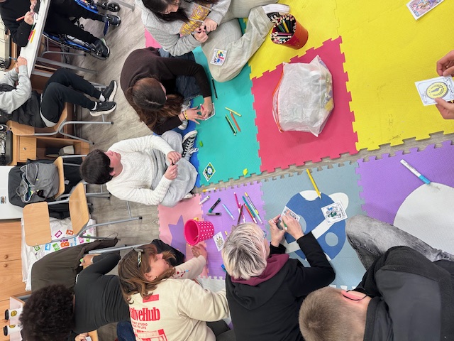 Στα πλαίσια της συμπεριληπτικής εκπαίδευσης, πραγματοποιήθηκε την Τρίτη 27 Ιανουαρίου, στην αίθουσα της Ειδικής Μονάδας ένα συνεργατικό εργαστήρι δημιουργικής γραφής, με στόχο τη δημιουργία, του εκπαιδευτικού παιχνιδιού καρτών, «Φτιάξ το-Παίξε-Γράψε».