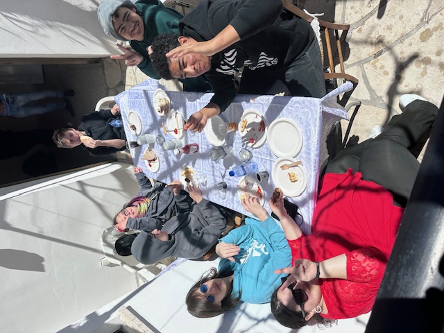 Η μέρα μας ξεκίνησε με επίσκεψη σ’ ένα από τα αρχαιότερα μοναστήρια της Κύπρου, την Ιερά Μονή του Τιμίου Σταυρού και έμαθαν για την ιστορία του Μοναστηρίου και τα ιερά λείψανα καθώς και τα εκθέματα του Μουσείου, που στεγάζεται στο χώρο του μοναστηριού από τον καθηγητή θρησκευτικών τους τον κ. Γεώργιο Πεσίνη. Οι μαθητές μας απόλαυσαν τη βόλτα τους στα γραφικά και όμορφα σοκάκια του χωριού, έβγαλαν τις φωτογραφίες τους και απόλαυσαν την ήρεμη ατμόσφαιρα του τόπου. Η εκδρομή μας μετατράπηκε και σε ψυχαγωγική, καθώς η ιδέα της Συνοδού της Μονάδας της κ. Φωτεινής Μιχαηλίδου που πρότεινε την αυλή του σπιτιού της στο Όμοδος, ως χώρο για να βρεθούμε όλοι μαζί, και να ετοιμάσουμε φαγητό για τα παιδιά, μας ξεσήκωσε, ώστε τα παιδιά να περάσουν για μία ακόμα φορά χρόνο μαζί και να αλληλοεπιδράσουν γύρω από το γεμάτο φαγητά τραπέζι.