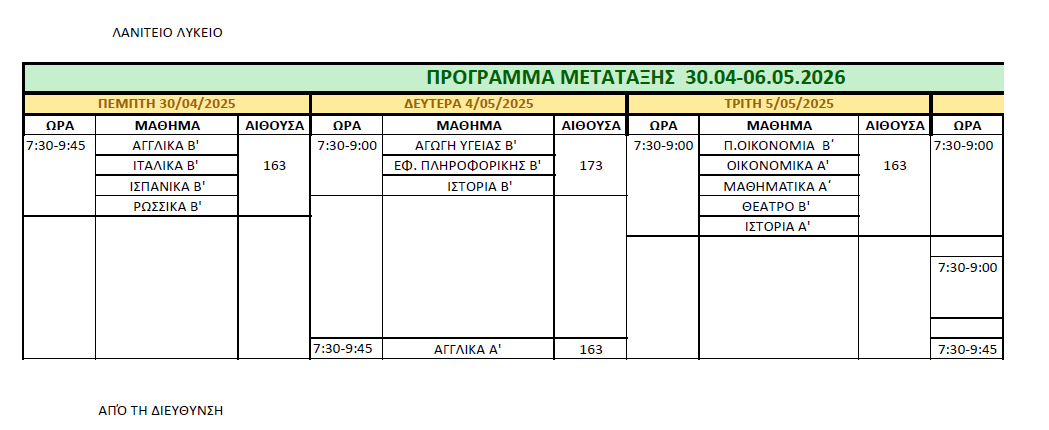 Πρόγραμμα Εξετάσεων Μετάταξης